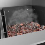 Il braciere è realizzato con piastre di rivestimento (laterali e posteriori) in ghisa spessore 10 mm, per garantire una perfetta protezione dalle alte temperature, facilitando così la gestione dalle fiamme. Dispone inoltre un alare in acciaio inox di alta qualità, che può essere facilmente caricato con diversi ceppi di legna e comodamente rimosso per il funzionamento a carbone vegetale o per la pulizia.